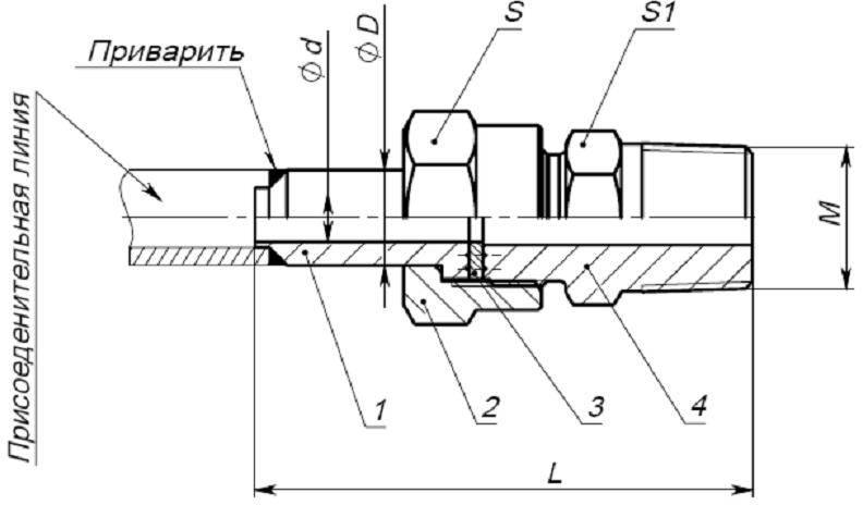 Ниппельные соединения с торцевым уплотнением выпускают в двух модификациях НСН - навертное, НСВ – ввертное, предназначены для присоединения ОУД, ОС к технологическим трубопроводам и аппаратам с неагрессивной средой.